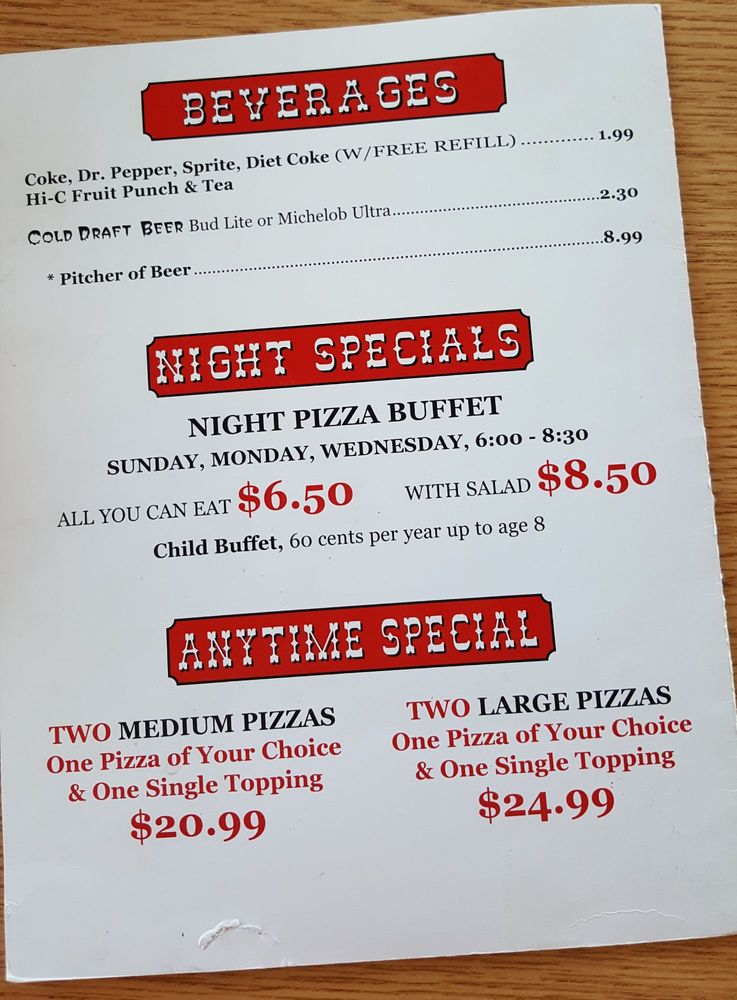 Big Banjo Pizza Parlor Menu